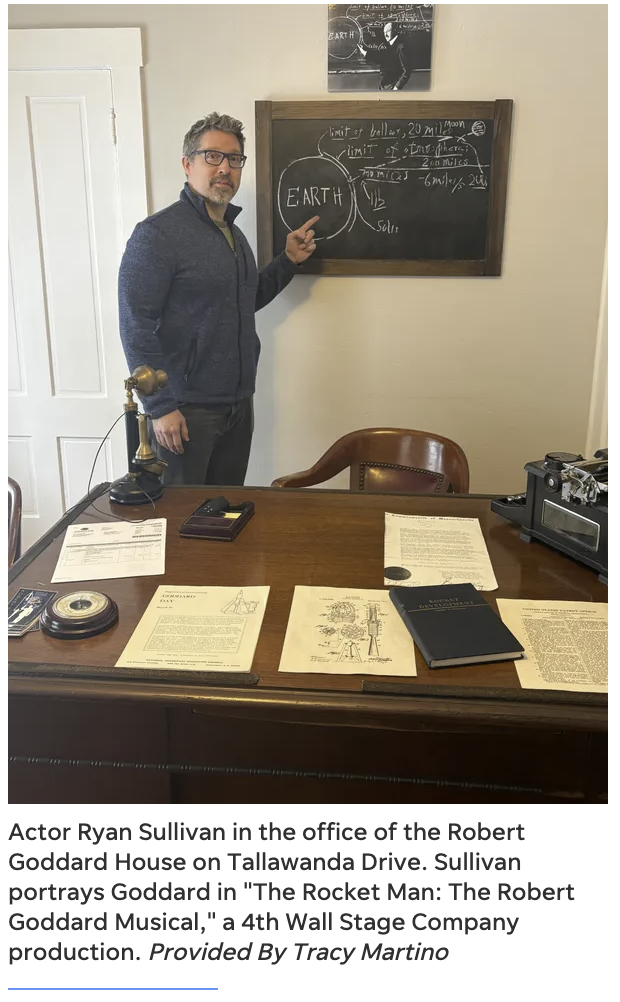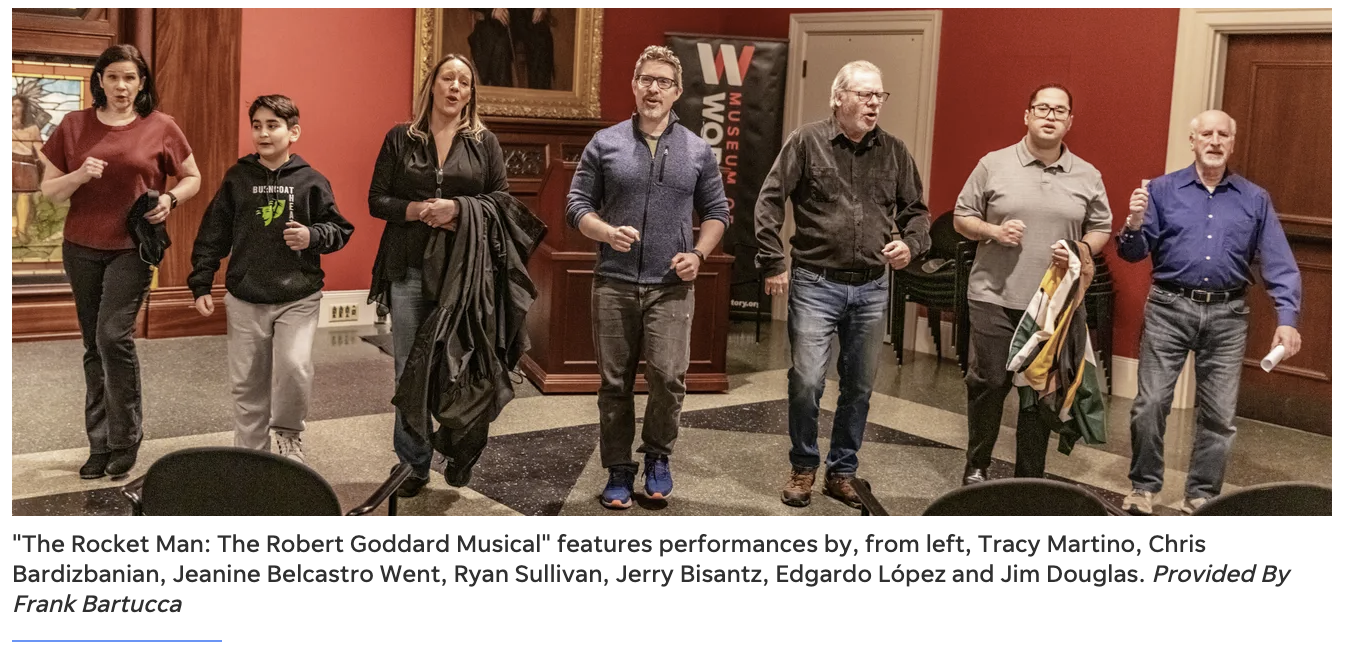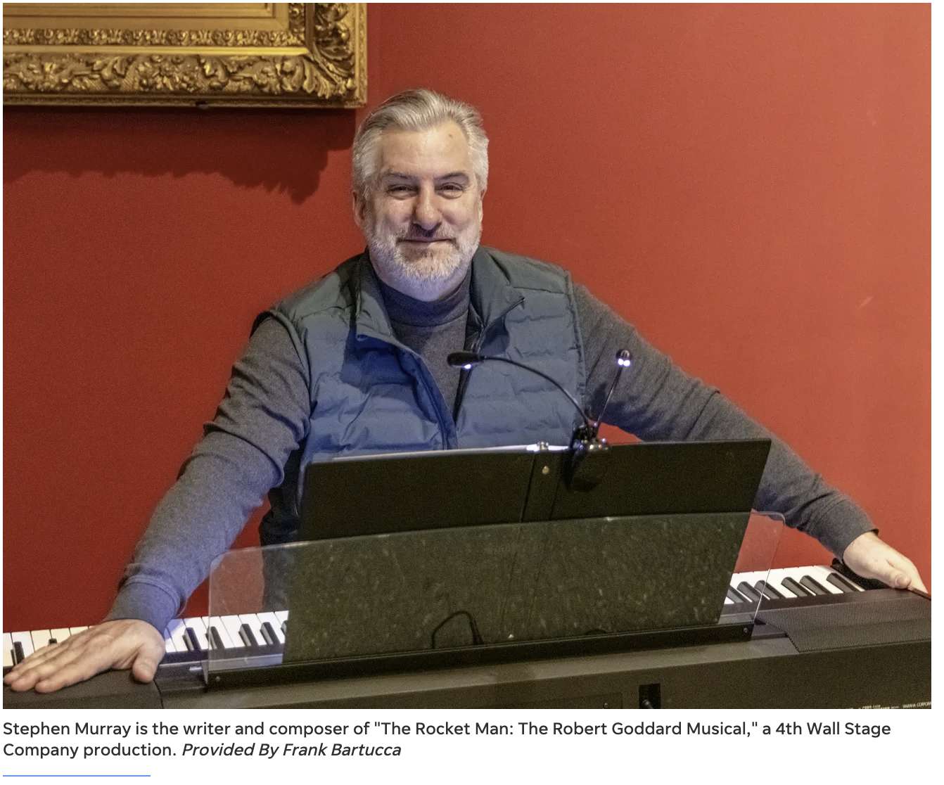 Goddard sings several songs in "The Rocket Man: The Robert Goddard Musical," a 4th Wall Stage Company production written and composed by Stephen Murray that has its world premiere running March 27 to April 4 at the Museum of Worcester.